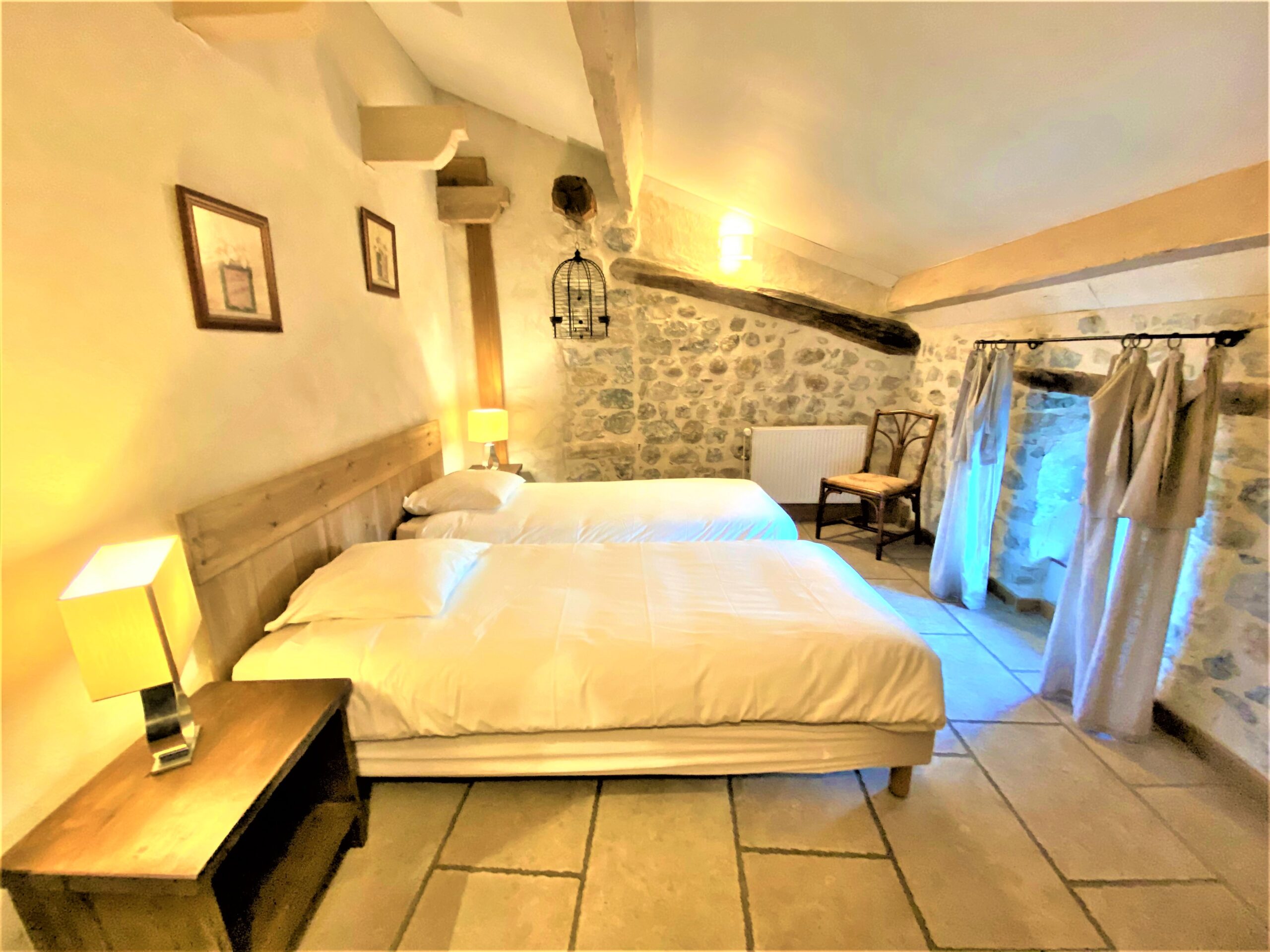– 3 GITES mitoyens**** de 100m2 chacun environ et s’ouvrant sur une passerelle dominant la cour intérieure et le patio, pour un total de 9 chambres doubles, 4 salles d’eau / 6 douches.